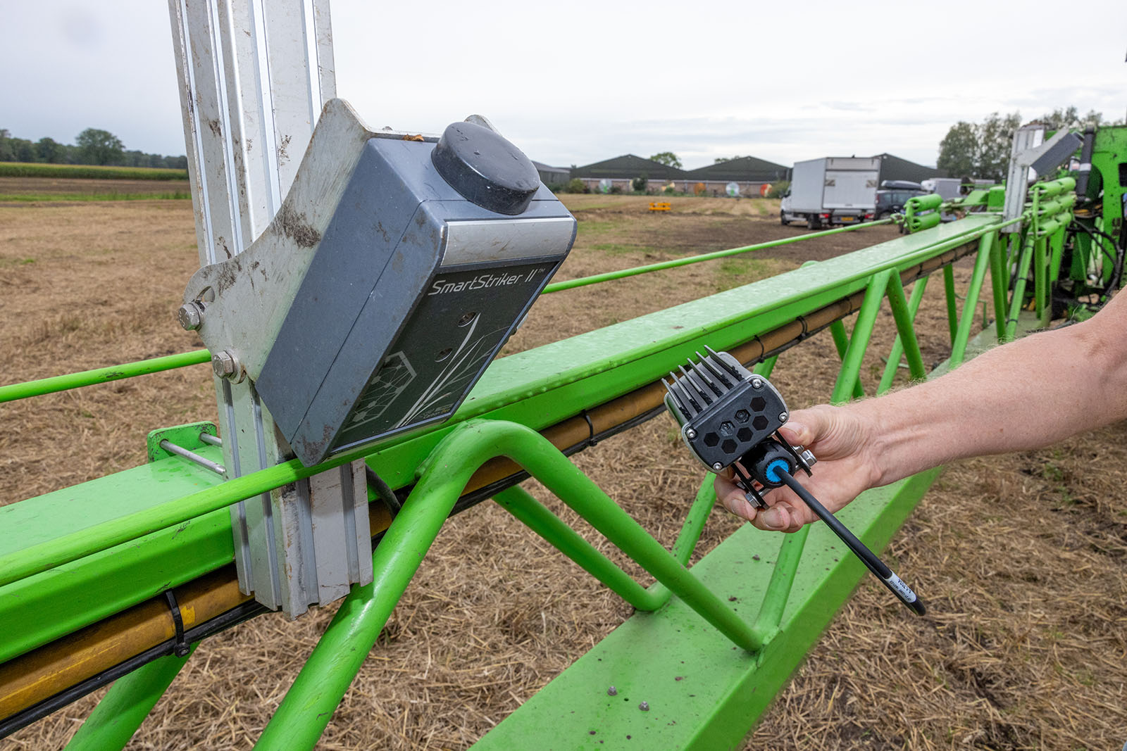 Software in de camera interpreteert de beelden en zet die meteen om in het signaal voor de PWM-aansturing. Het is een op zichzelf staand systeem dat zich allemaal binnen de spuitboom op de machine afspeelt. De eerste machine met deze nieuwe camera draait dit seizoen in Nederland. Er draait al een systeem in Australië.