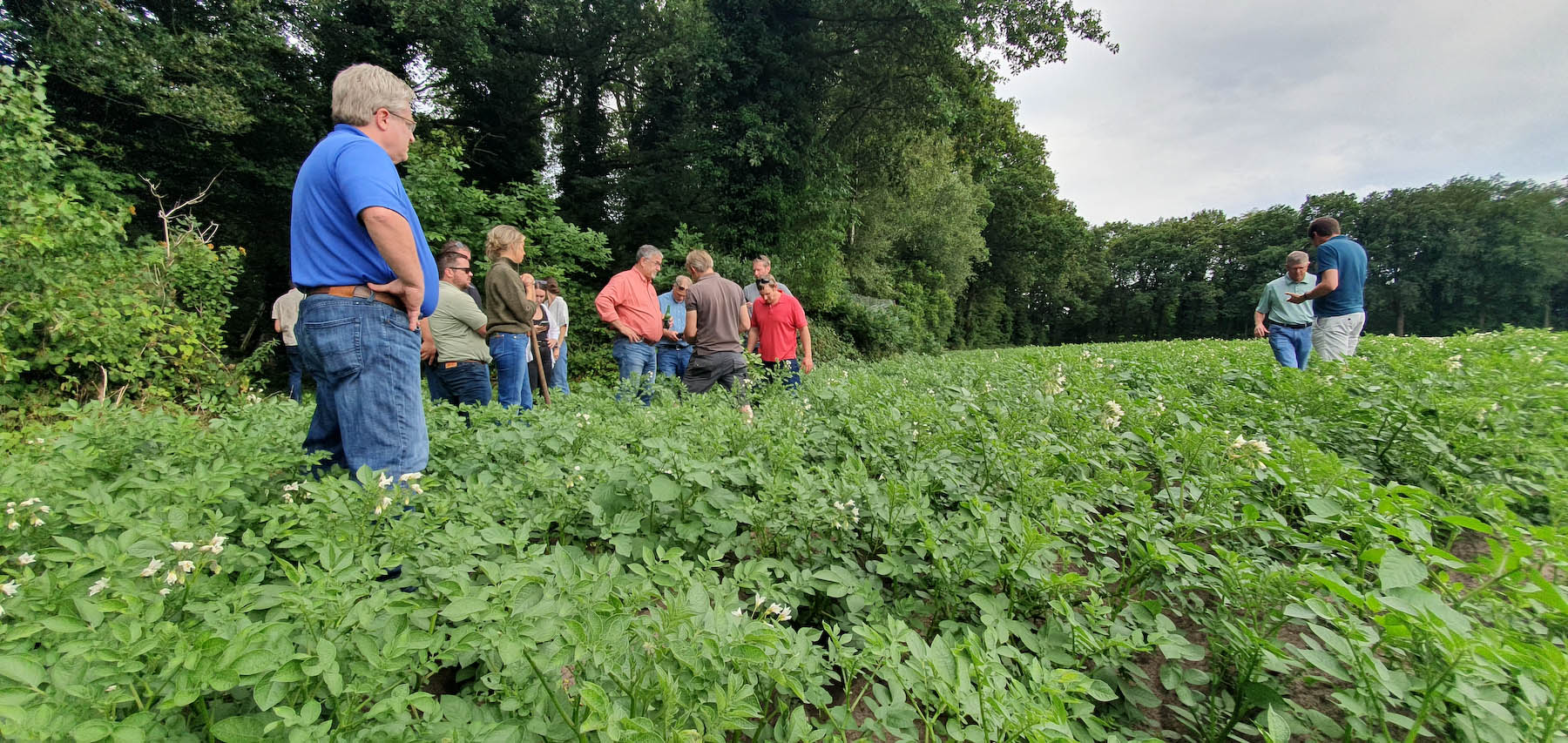 Pieter van Leeuwen Boomkamp laat onder meer de teelt van aardappelen aan de Amerikaanse bezoekers zien. In Illinois is aardappelteelt bijzaak. Een Amerikaanse boer vertelt op de akkers in Nijkerk dat hij al uitvoerig aan gewasbescherming doet middels het gebruik van een (spuit)drone. Hier nog verboden, al gaat Van Leeuwen Boomkamp wel dit najaar testen met het zaaien van een groenbemester over de maïs met een drone eind augustus. Ondanks al die verschillen, herkennen de Nederlandse en Amerikaanse boeren veel in elkaar. Machines zijn gelijk, milieu speelt overal, ziektes zijn een zorg en automatisering en arbeid zijn een issue. Hooguit op andere schaal. Een van de deelnemers aan de reis zegt: ‘Ik ben zesde generatie. Dat betekent dat je gewoon op de gezondheid van je grond moet passen. Dat zie ik in Amerika, maar ook hier. Ik denk dat het voor ons allemaal belangrijk is om veel aan educatie te doen. Te laten zien waar we mee bezig zijn als boeren.’ Ook dat was een doel van deze studietrip. Ontdekken wat er in de wereld op landbouwgebied gebeurt. Om kennis te delen. De oogst aan indrukken en input was groot. Saldo positief.