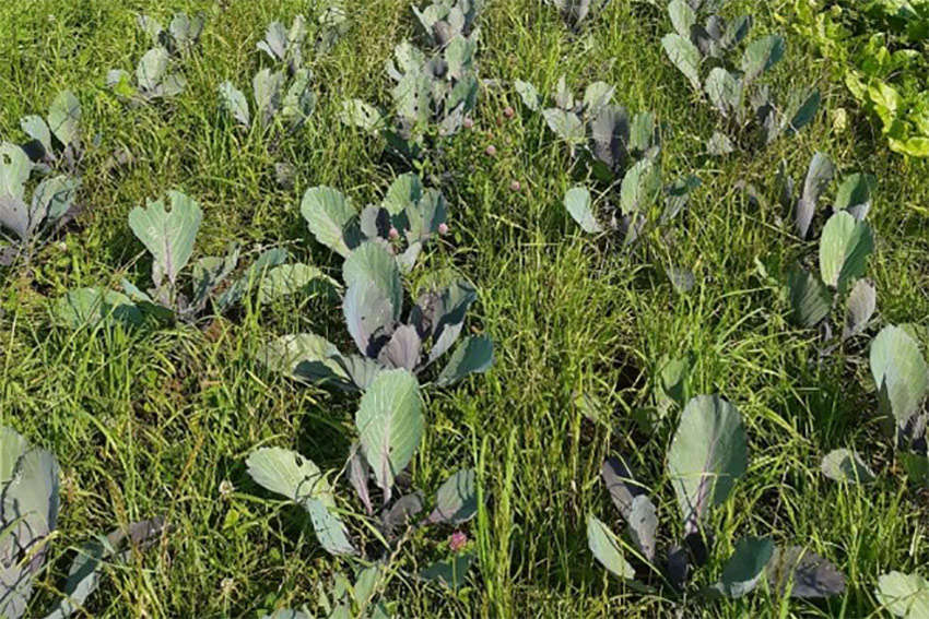 Dit teeltseizoen is de bodem tussen de banen met gewassen bedekt met gras. De combinatie van strokenteelt en bodembedekking met gras blijkt dit jaar, mede door de vele regen, voor Nieuwenhuis een uitdaging. Resultaat is dat de opbrengst kool en bieten op de helft van het beteelde areaal tegenvalt. Daar hebben de gewassen te veel concurrentie gehad van het gras.