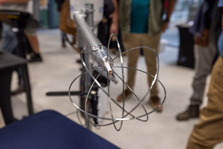 Het hart van de EVATO1 wordt gevormd door twee dunne draadjes die samen een thermokoppel vormen. Beschermd door rvs-ringen meten ze uiterst nauwkeurig de luchttemperatuur. “Het heel precies meten van veranderingen in temperatuur is de basis voor het bepalen van de verdamping door een gewas”, legt CropX-accountmanager Edwin Blom uit.