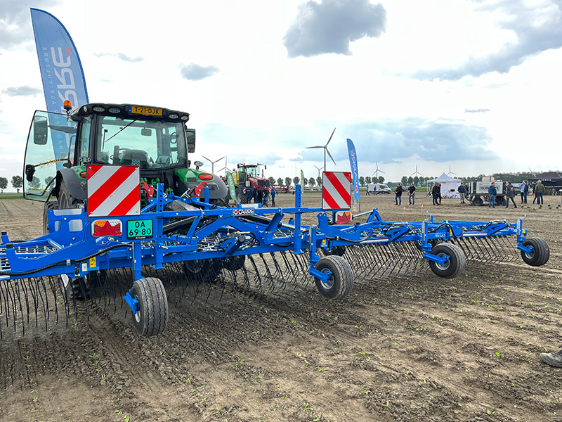 Importeur Pool Agri toonde in Lelystad de nieuwe Carré Pressius onkruidwieder. De machine onderscheidt zich van andere veertandwieders, doordat de intensiteit van de werking op verschillende manieren is te verstellen.