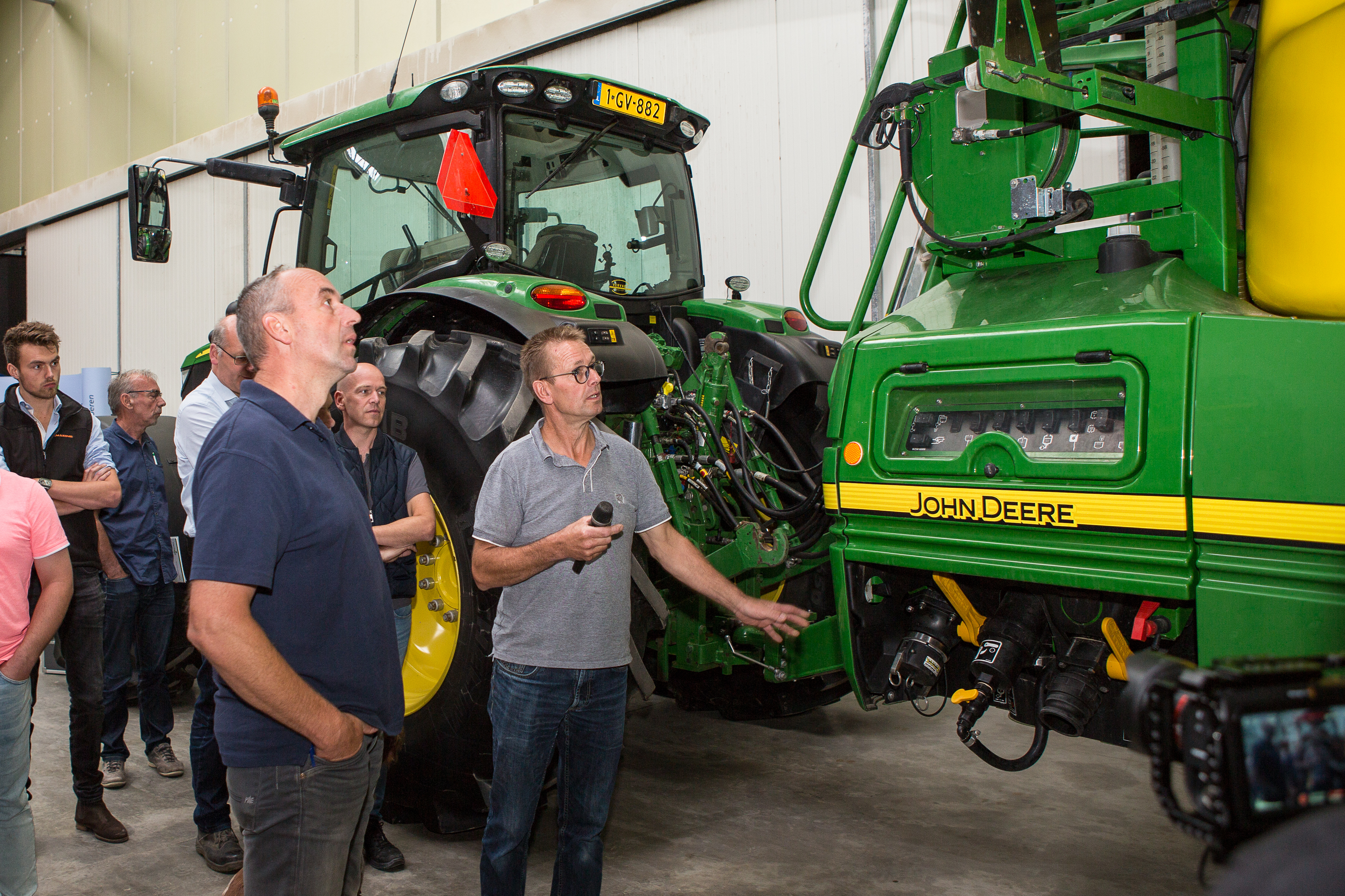 Martin de Meijer laat tijdens NPPL on Tour zijn John Deere-spuitmachine zien. Hij geeft aan dat het probleem met precisielandbouwtechnieken veelal de wetgeving is.