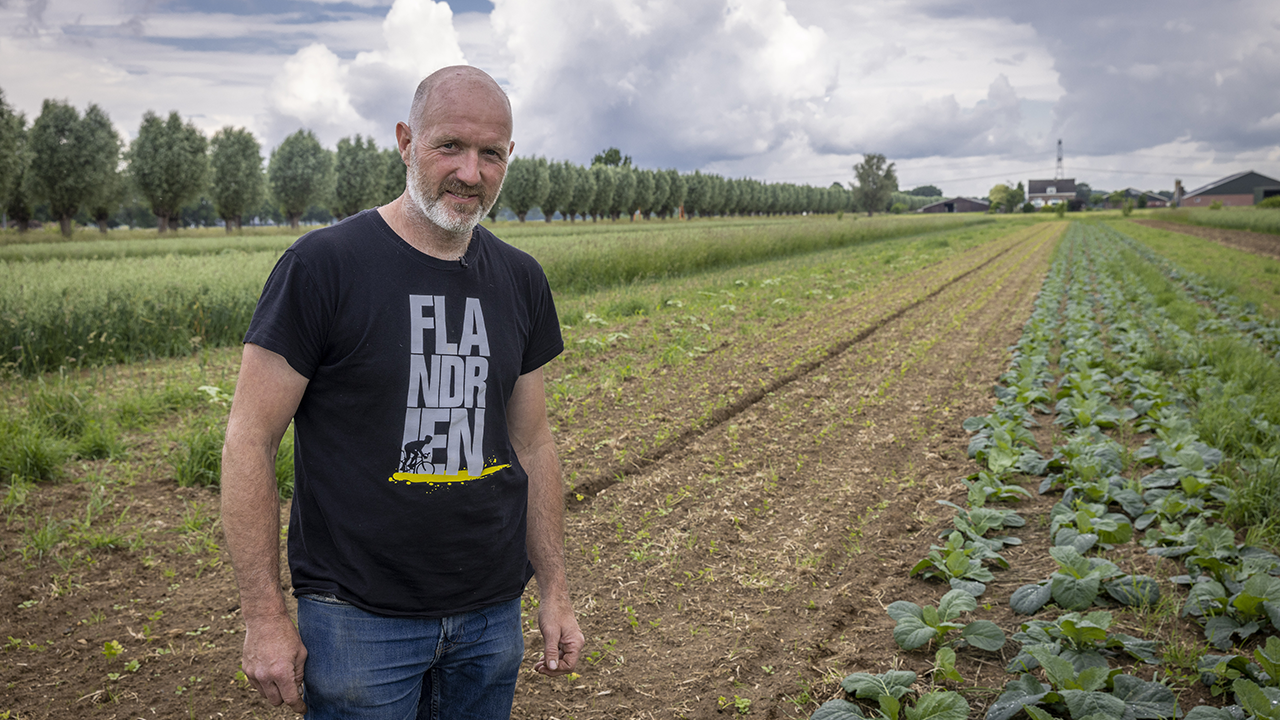 Om onkruid te kunnen beheersen zaait hij groenbemestingsgewassen, zoals stoppelknollen, spinazie, klaversoorten tussen de teeltrijen. Zodra die te groot dreigen te worden vernietigt hij deze planten stroken met getande rollen.