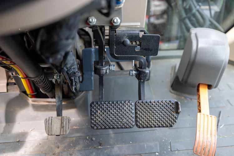 De autonomie laat de trekker wanneer nodig stoppen, maar ook remmen. Voor het remmen wordt een aanpassing gemaakt met kabels die de rempedalen aantrekken.
