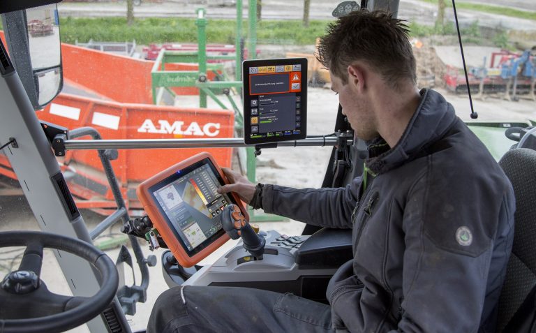 Akkerbouwbedrijf Sturm in Ens in de Noordoostpolder heeft woensdagavond 2 mei een eerste perceel uien variabel bespoten met een bodemherbicide.