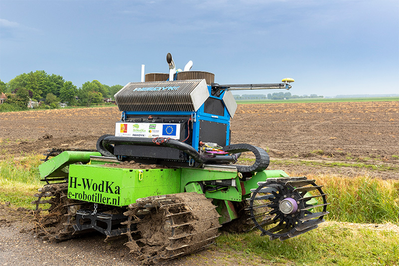 Donderdag 19 mei presenteerde H-WodKa de e-Robottiller voor het eerst aan het publiek. Helaas voor de demonstratie in Goudswaard (Z.-H.) werd die abrupt onderbroken door een heftige regenbui waardoor de toplaag veranderde in modder, maar ervaring is er zeker.