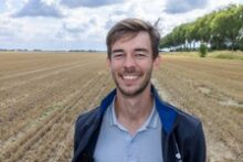 Brian Salomé in IJzendijke (in het westen van Zeeuws-Vlaanderen) is ‘redelijk tevreden’ over hoe de groenbemester onder de tarwe vandaan is gekomen. Het is 28 juli. De groenbemester is op een deel van het perceel krap een maand eerder met een drone gezaaid. 16 juli is de tarwe gedorst. Na het zaaien is er zo’n tien millimeter regen opgekomen, daarna is het tot de tarweoogst droog gebleven.