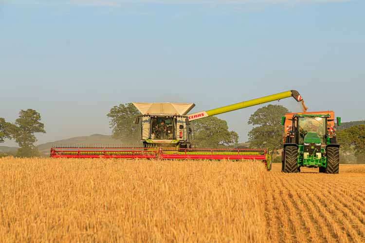 Bij de hoofdfoto: Hay CLAAS Lexions-30. Met technologie zoals CartACE van Ag Leader ontvangt de chauffeur van de trekker automatisch een AB-lijn parallel aan de maaidorser om rijdend lossen te vereenvoudigen. Momenteel vooral in gebruik buiten Nederland zoals hier in het Verenigd Koninkrijk.